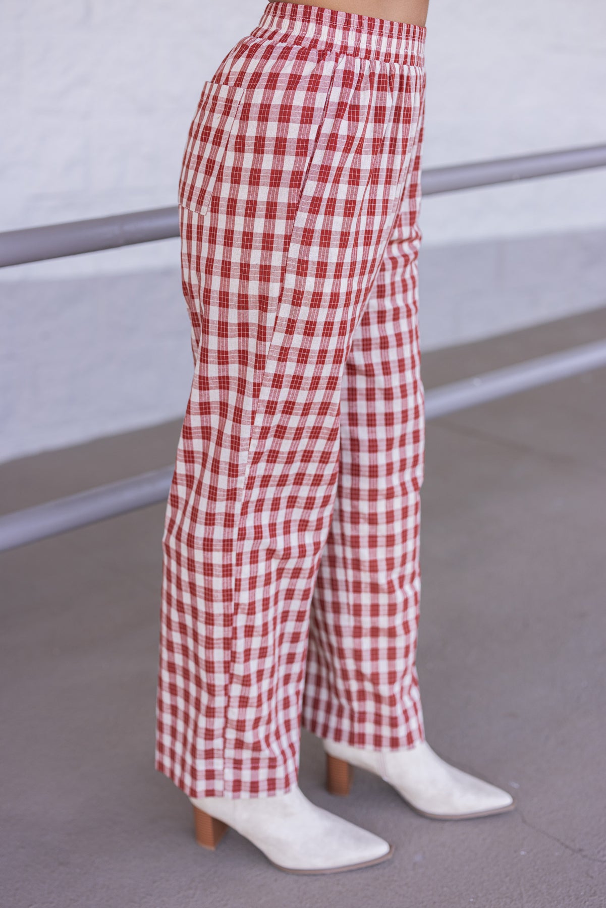 Bring cozy vibes and effortless style together with these rust and taupe plaid pants! Featuring a comfy elastic waistband and trendy wide legs, they’re perfect for stepping out in playful fashion. Easy to mix and match, these pants add a fun twist to your everyday wardrobe, whether dressed up or worn casually! Shop the look: Sweater Cardigan Top