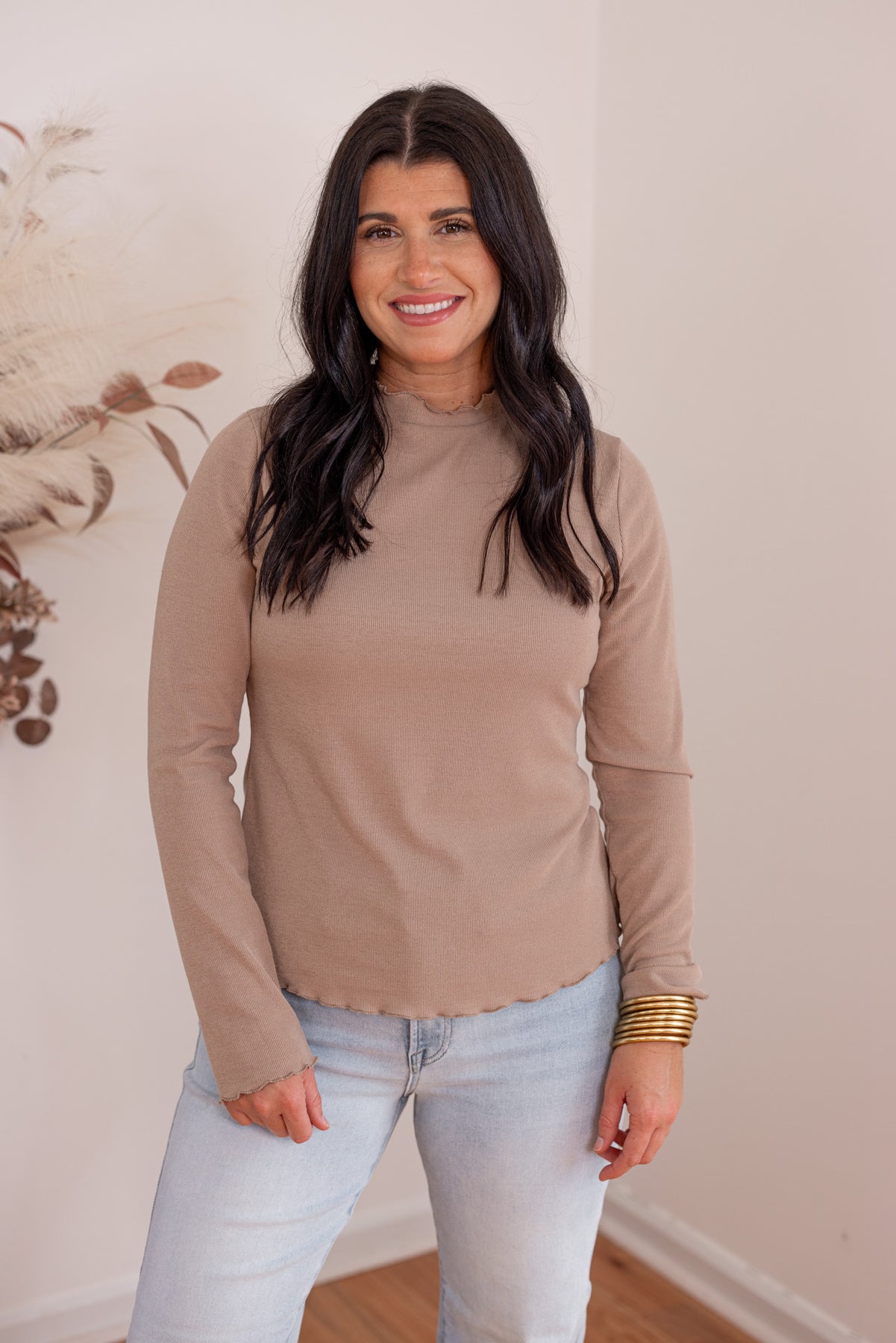This knit top will have you feeling 'all better'! The ribbed fabric, ruffle trim, and high neck give it a chic touch, making it a great choice for wearing solo or layered under a vest.