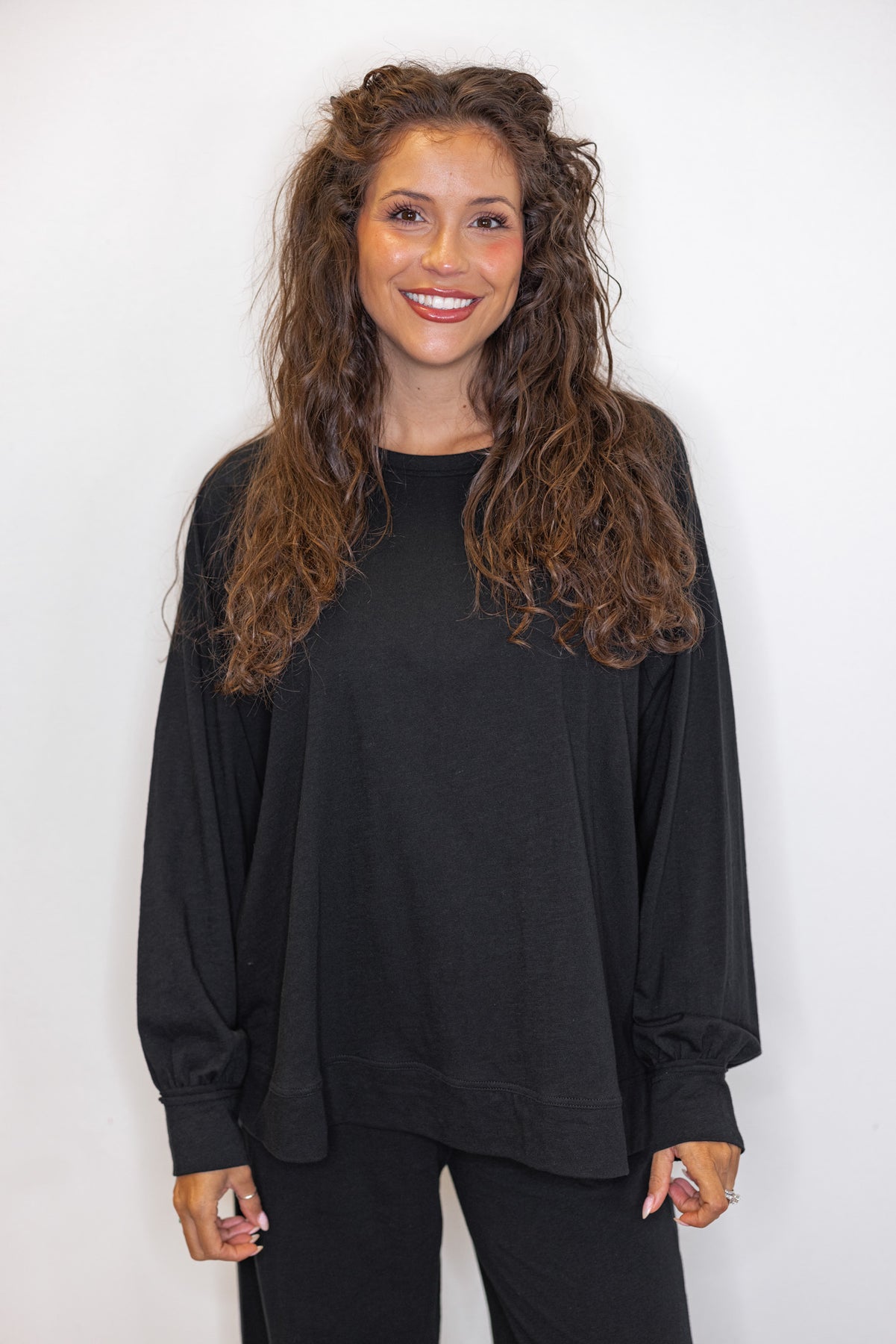 women's black cotton long sleeve lounge and wide leg pants matching set