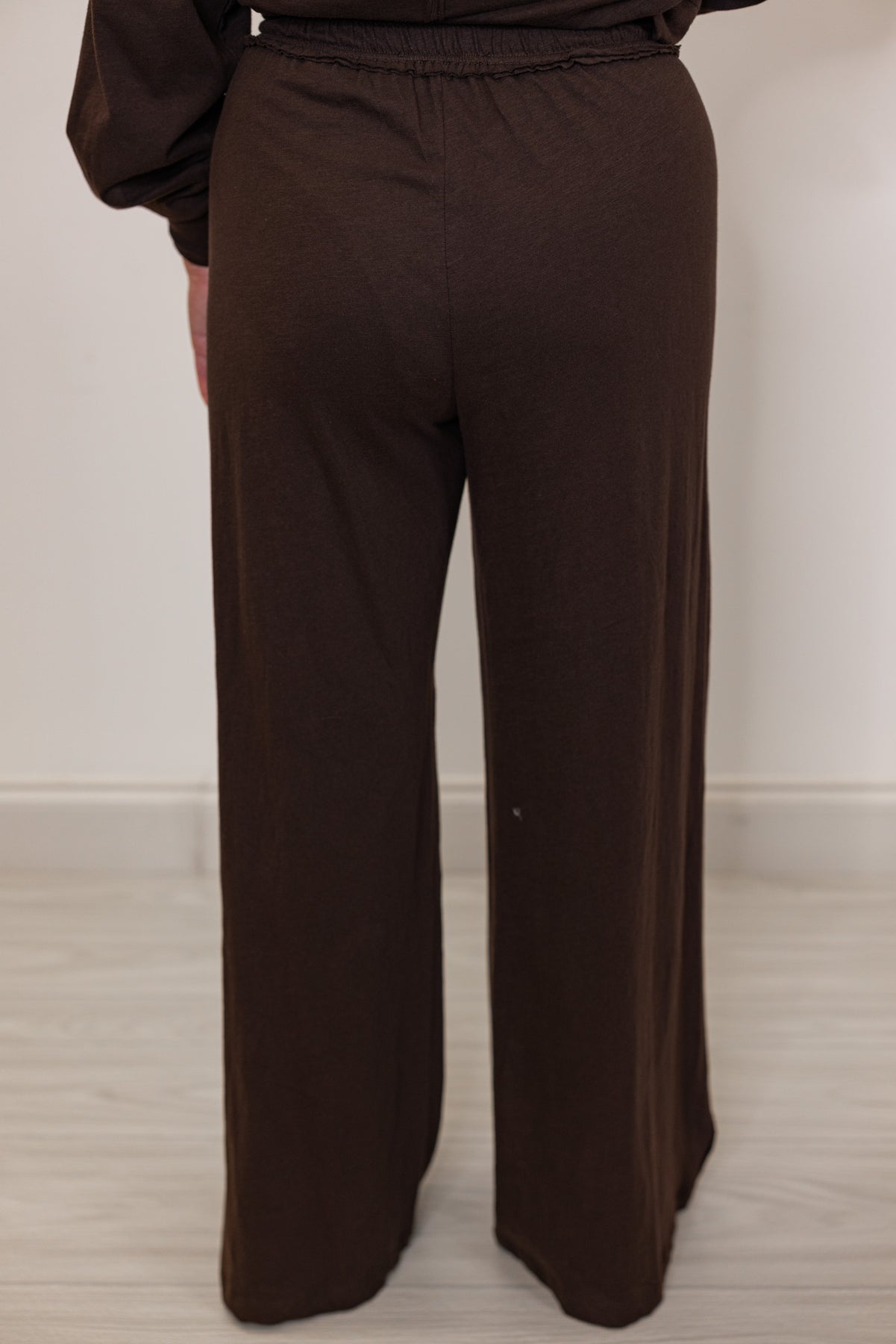 Back view of women's Brown wide-leg pants