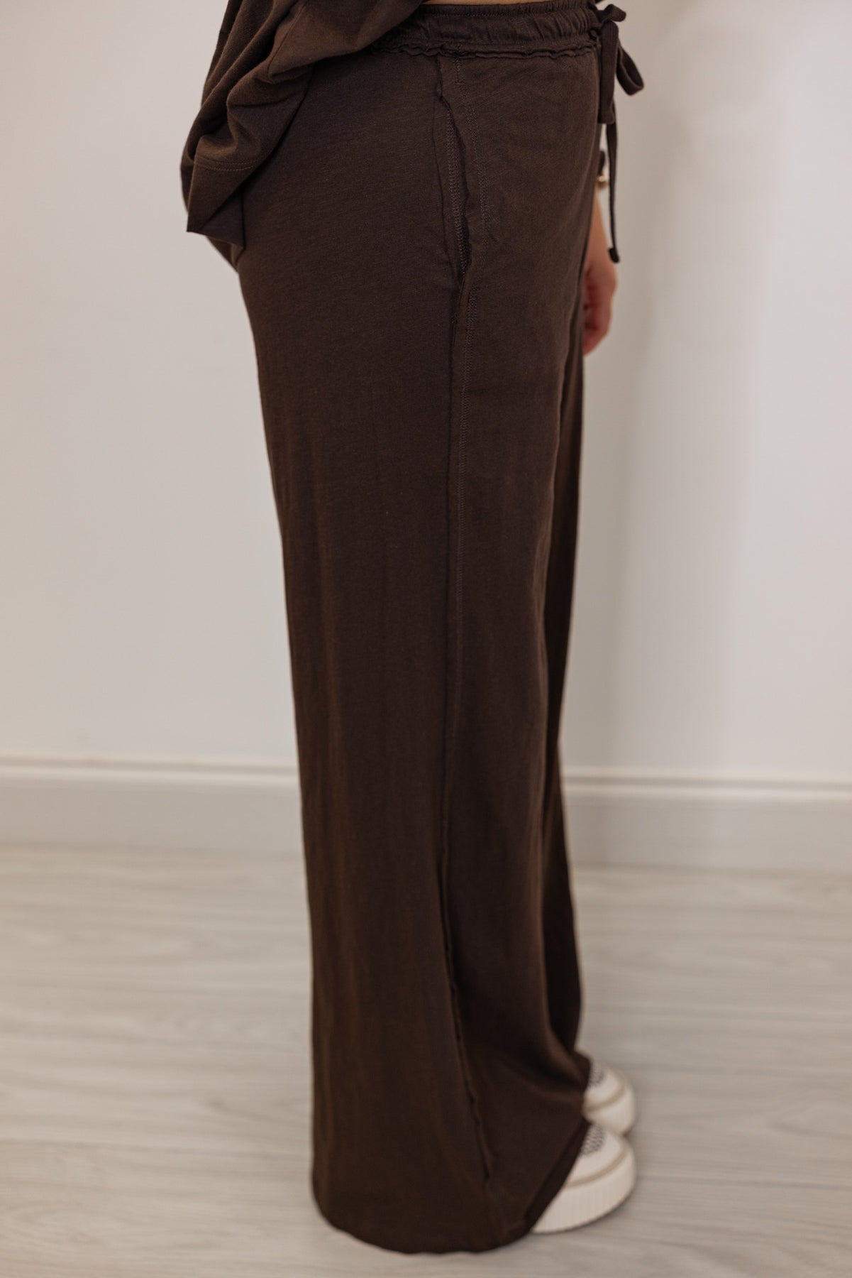 Side view of Brown wide-leg pants