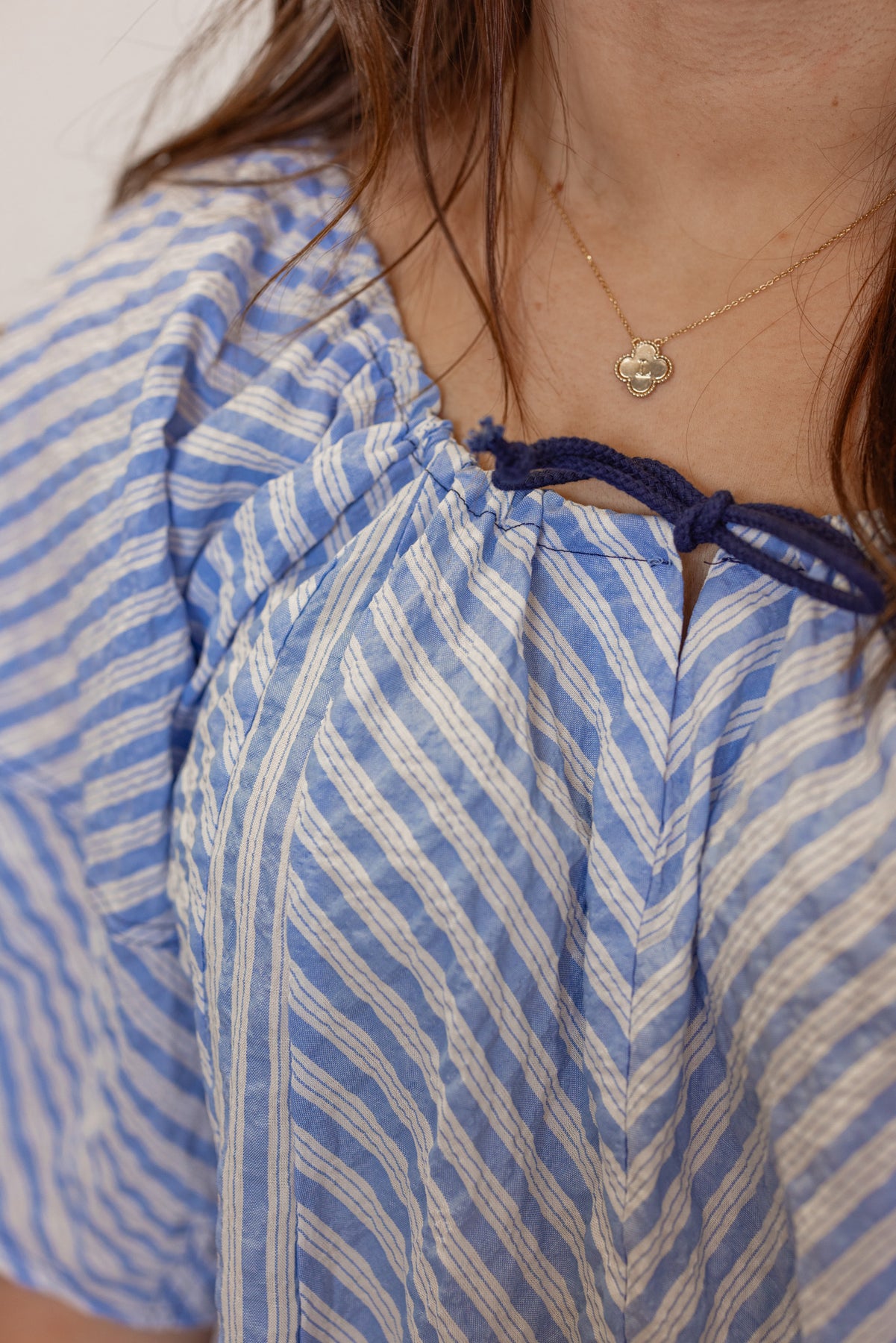 Get ready to set sail in our new Anchors Away Romper! Made of lightweight seersucker fabric, this romper is both comfortable and eye-catching. The drawstring detail at the neckline and wide legs add a unique touch to this playful piece. Perfect for all of your Summer activities!