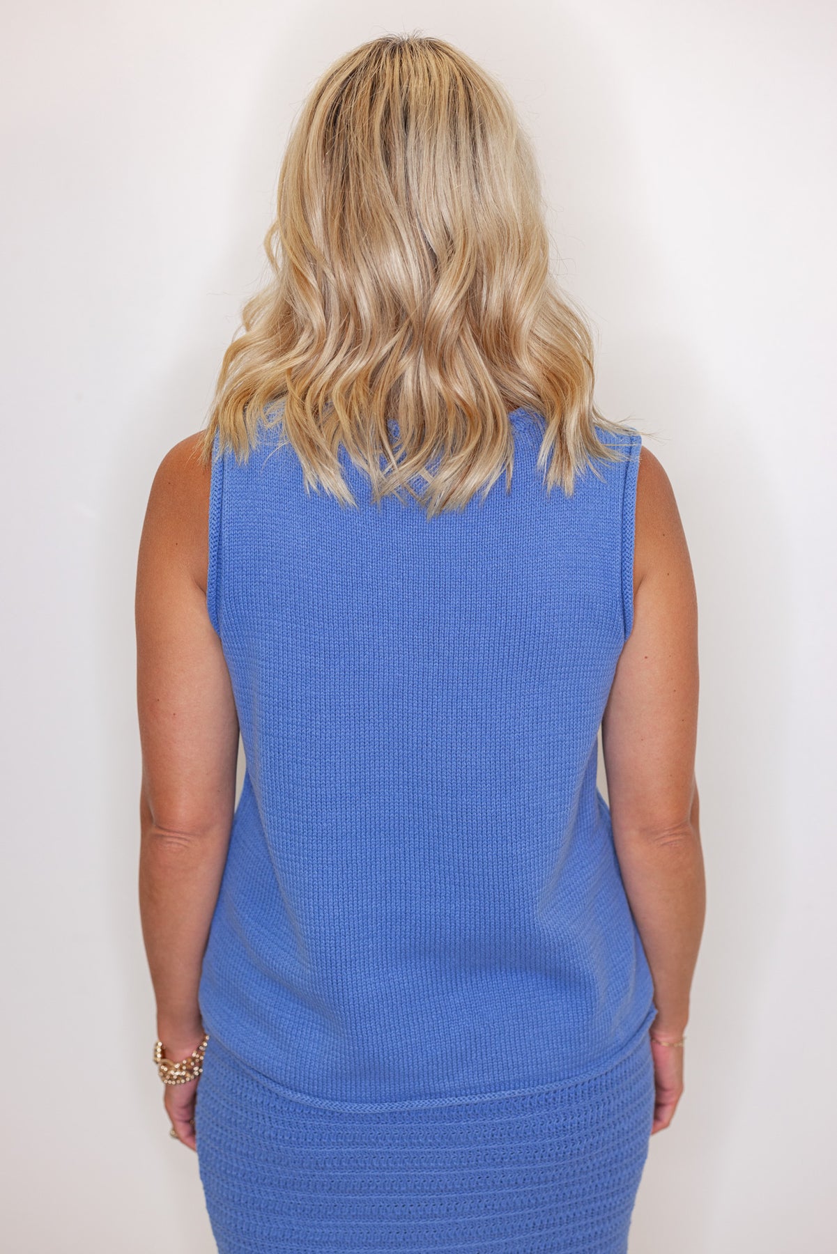 Get Fall party ready with this Captivating Blue Maxi Skirt Set! Featuring a sleeveless knit top that has rolled trim details, and a maxi sweater knit skirt with an elastic waistband, and side slit in the bottom hem. Wear alone with sandals, or layered with a denim jacket + sneakers for cooler weather!
