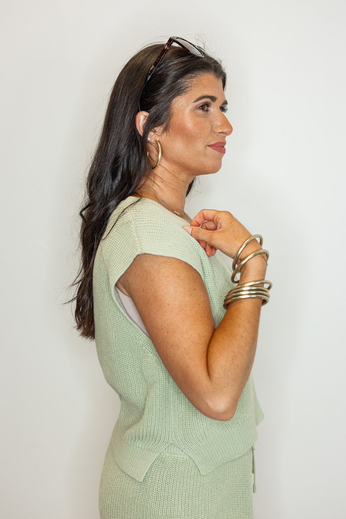 The casual design of this super cute light sage set is Sweet Perfection! Sleeveless top and elastic waist shorts, in a lightweight sweater knit fabric. The perfect outfit - trendy and stylish but comfy and cool! Just right for Spring and Summer, and all of those fun upcoming events.