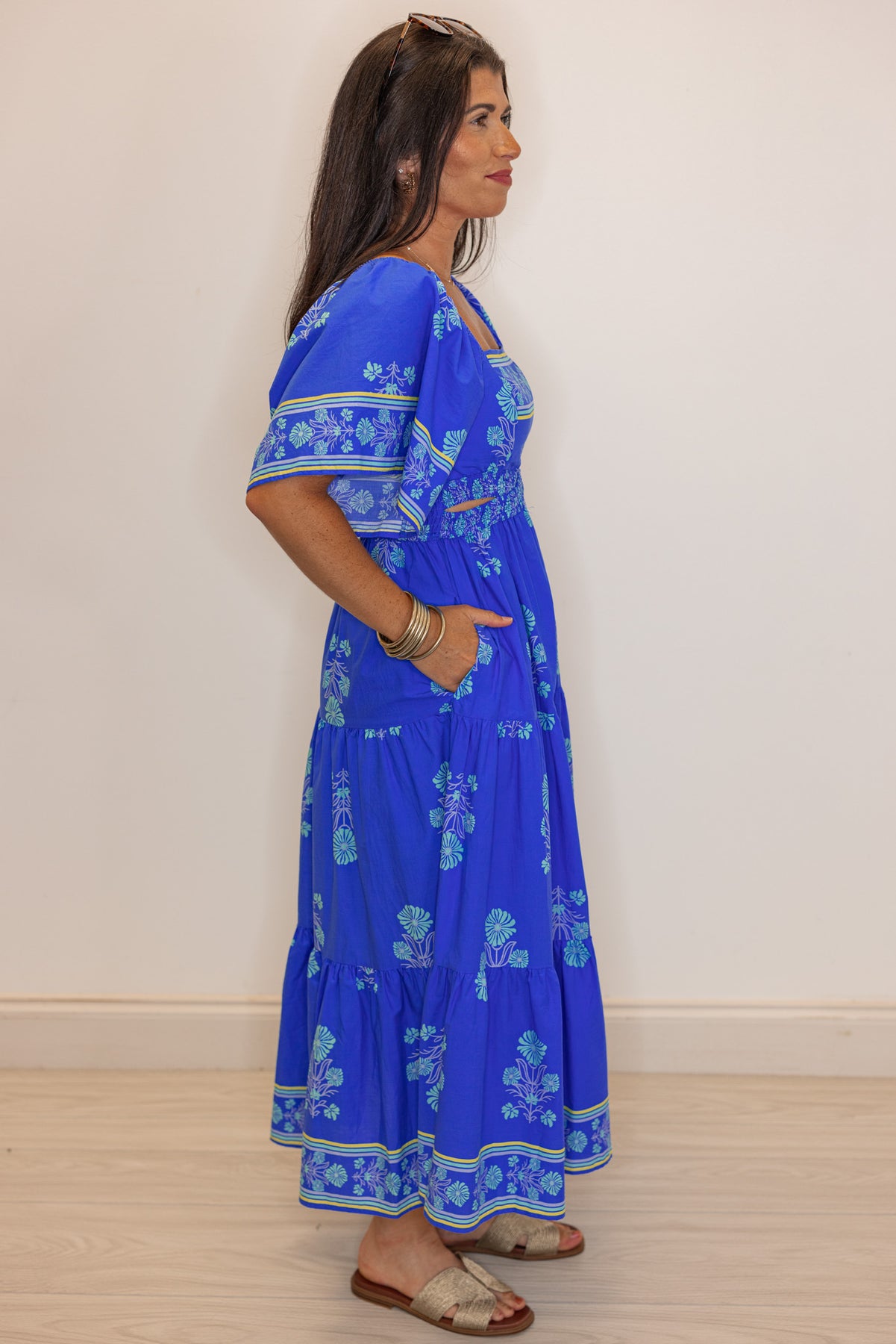 This Tropic Florals Blue Midi Dress will have you feeling like a breath of fresh air! With a playful blue and mint floral print, puff sleeves, and a square neckline, it effortlessly exudes a laid-back vibe. The smocked waistband and peek-a-boo side cutouts add a touch of flirtiness, while the tiered skirt creates a flowy silhouette. Perfect for brunch with your besties, or date night at the beach!