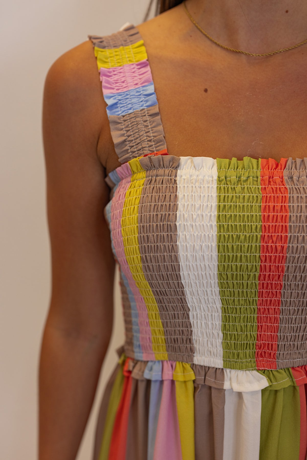 Pretty Stripes are our new FAVE! Check out this adorable sleeveless midi dress, featuring a square neckline, smocked bodice, and a ruffle tiered skirt. Lightweight and perfect for any occasion, this Flawless Striped babe adds effortless style to your wardrobe!