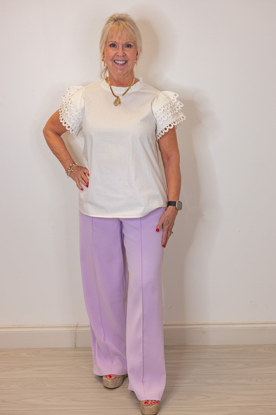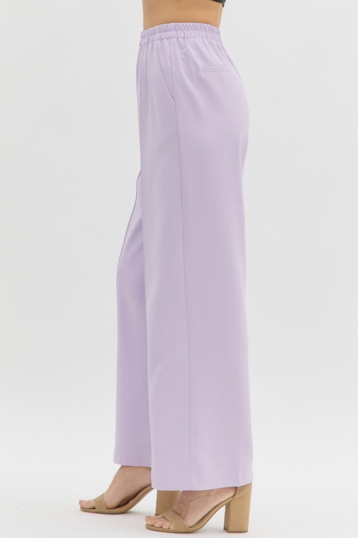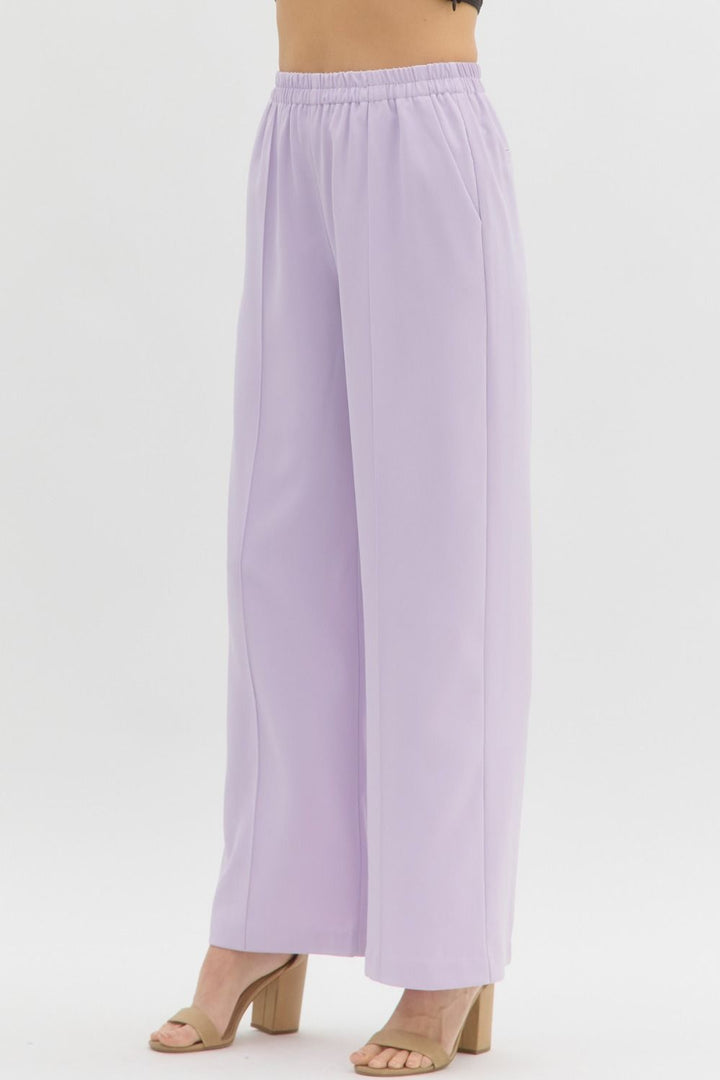 Elevate your style with our Timeless Treasure Lilac Pin tuck Pants! The lilac fabric and elastic waist are super cute, while the front pin tuck detail and faux back pockets add the look of custom tailoring. A fun upgrade to your wardrobe, for dressy or casual events! Shop the look: White Top
