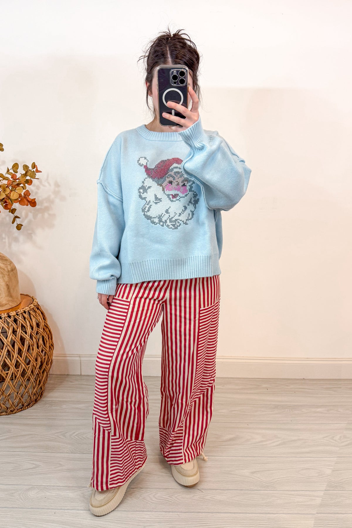 The jogger trend but make it extra CUTE! Check out these wide leg joggers, featuring berry red and cream multi patterned stripes. With an elastic waistband and drawstring, front pockets, and adjustable cinch ankles you'll be ready to stand out in style. Dress theses babes up or wear them casually for UGA tailgating - perfect either way!