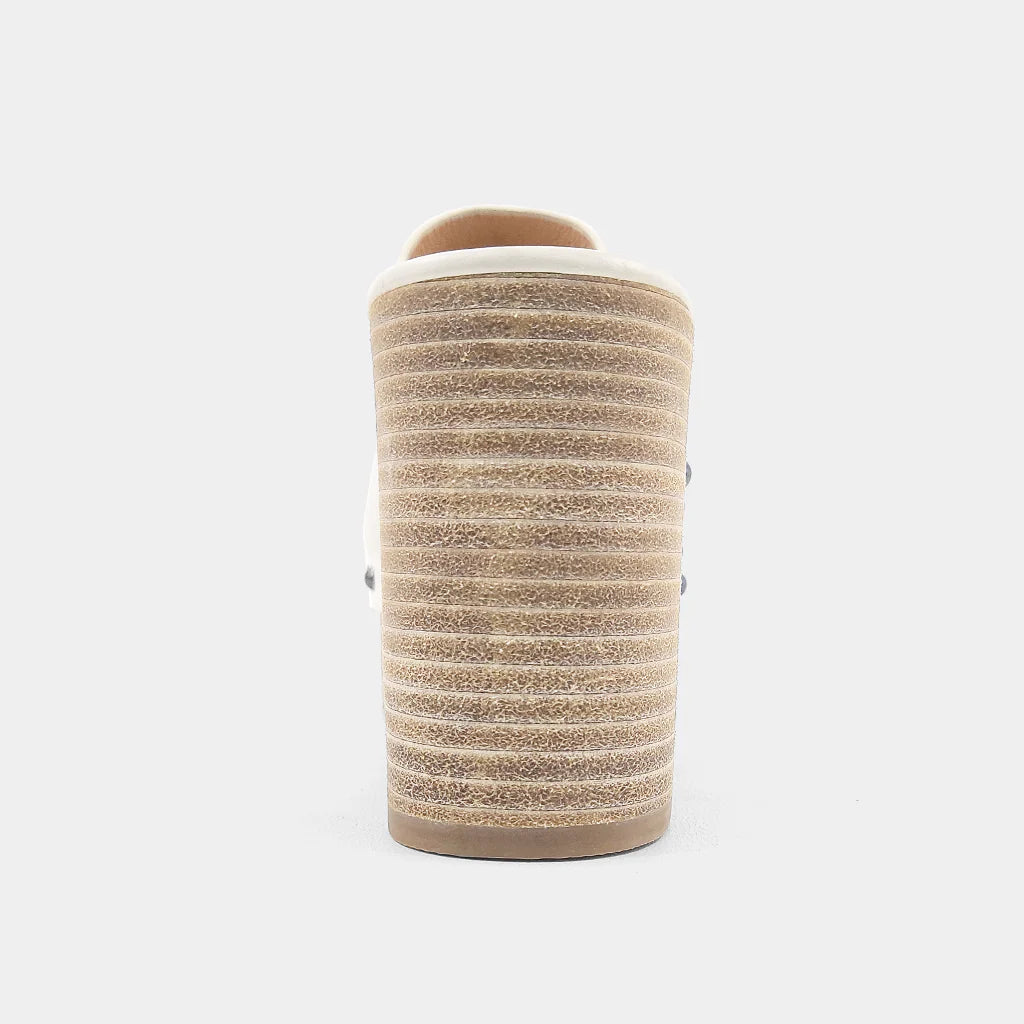 Our GINA platform wedges are inspired by vintage '70s clogs. This pair is crafted from super soft faux leather upper, a stacked wedge heel and feature metallic studs for some extra shine. Slip them on with everything from cropped jeans to dresses.