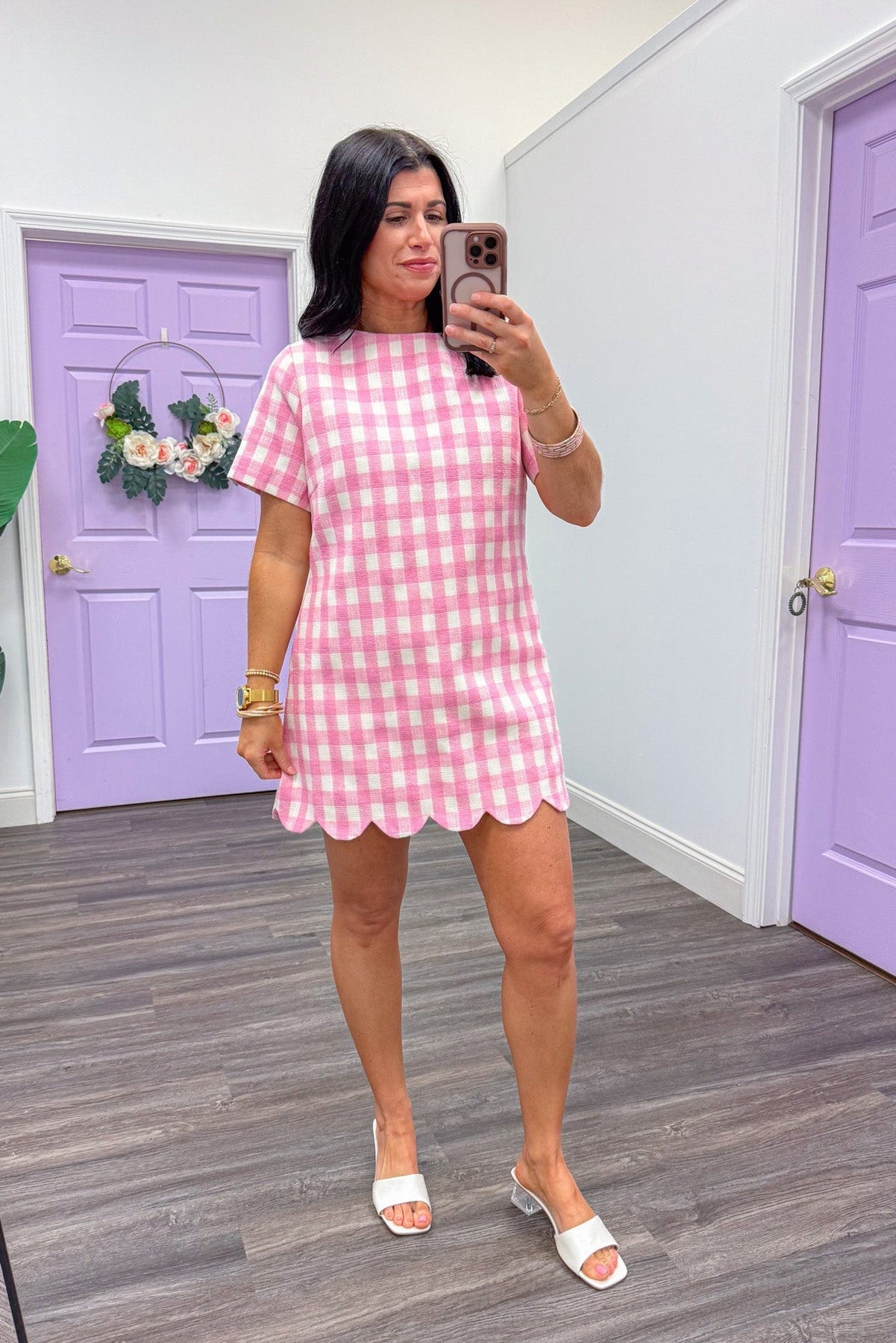 Step into the season with our Summer Sass Pink Gingham Dress! Its playful pink and cream gingham print adds a charming touch to the classic crew neckline and short sleeves, while the scalloped hem brings a sweet surprise. Perfect for Easter events, Spring activities, or Summer days out with friends!
