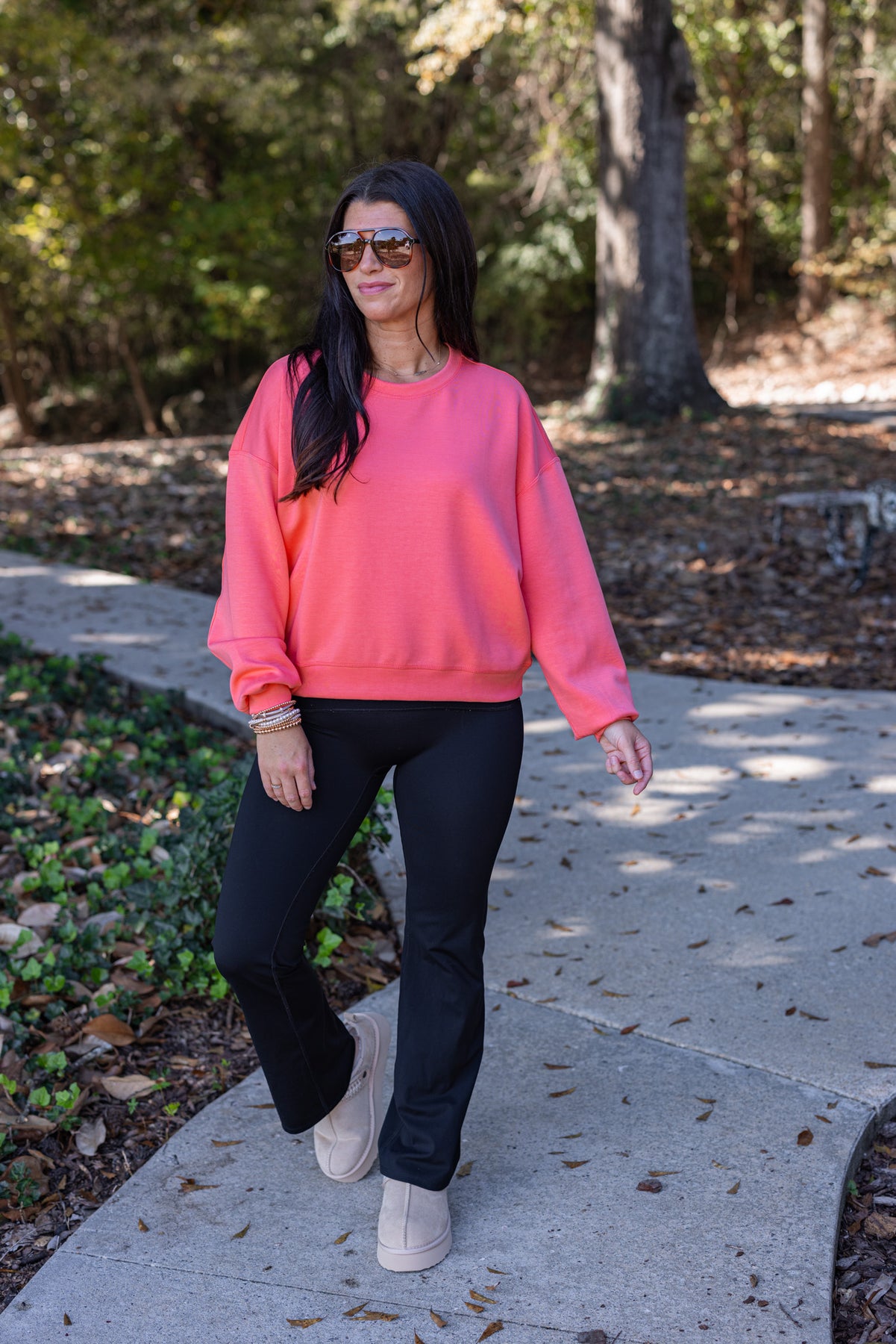 Luxuriously soft scuba knit fabric! This scuba sweatshirt is semi-cropped and features a crew neckline and long sleeves. The ultimate "go-to" everyday top that is just as trendy as she is comfy!