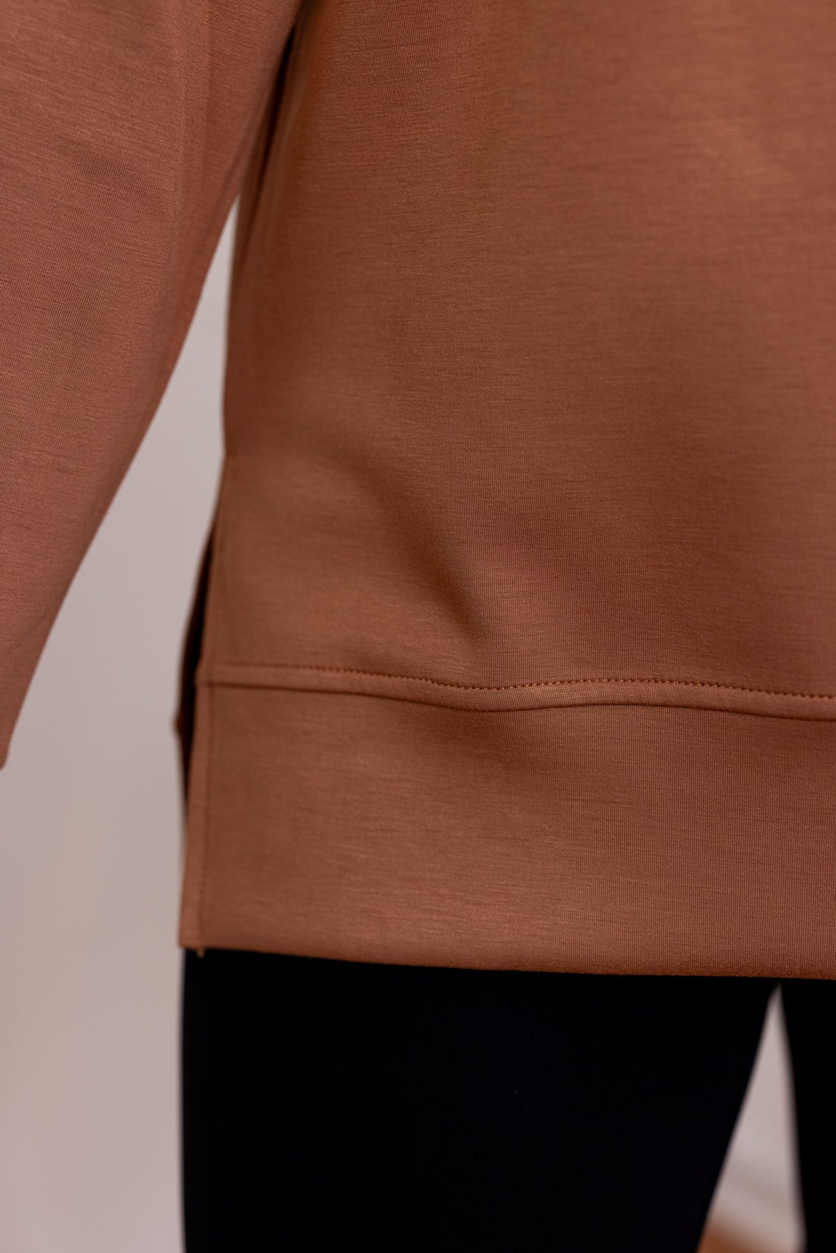 Step into style with our Scuba Knit Perfection tan top! This must-have piece features a mock neck and long sleeves with drop shoulder, perfect for any upcoming adventure. Made from luxuriously soft scuba knit, this top will keep you comfortable and looking effortlessly cool! Available in 5 colors HERE! Shop the look: Vest | Spanx Pants | Booties