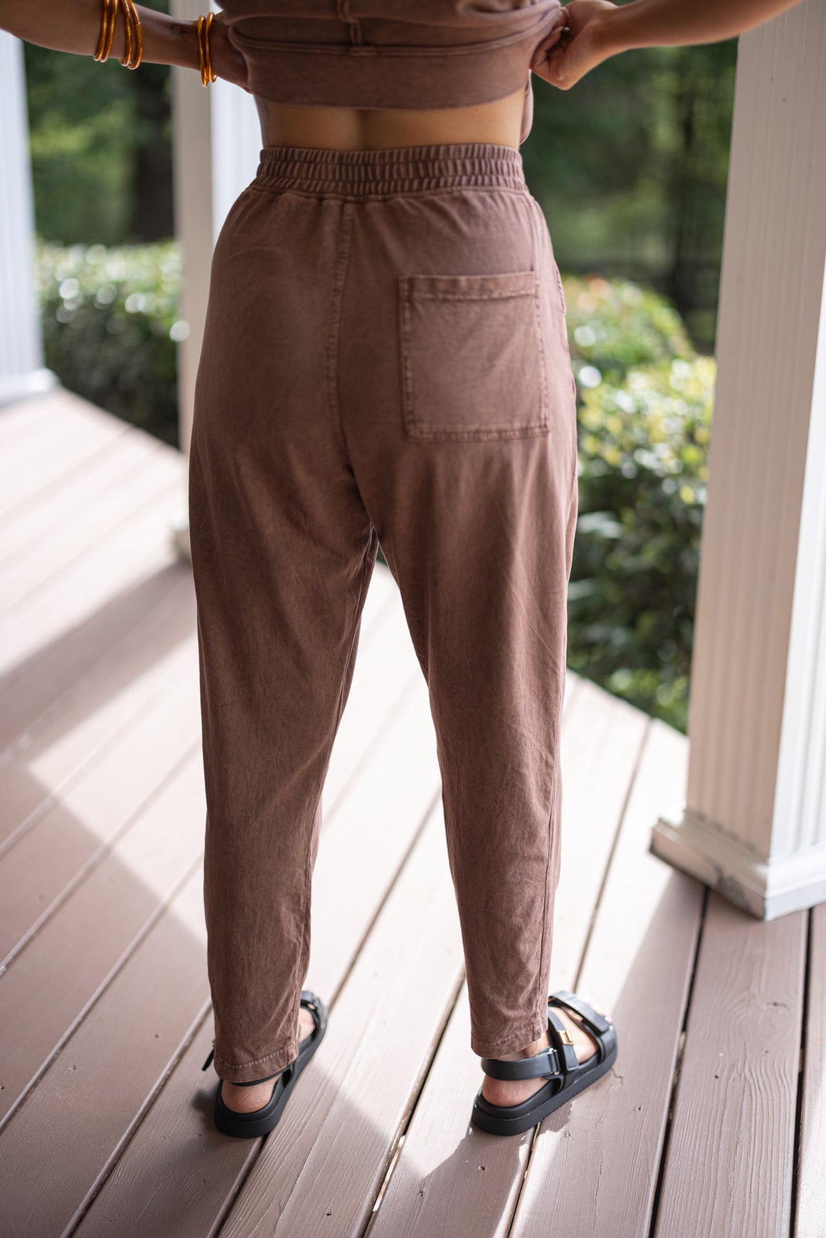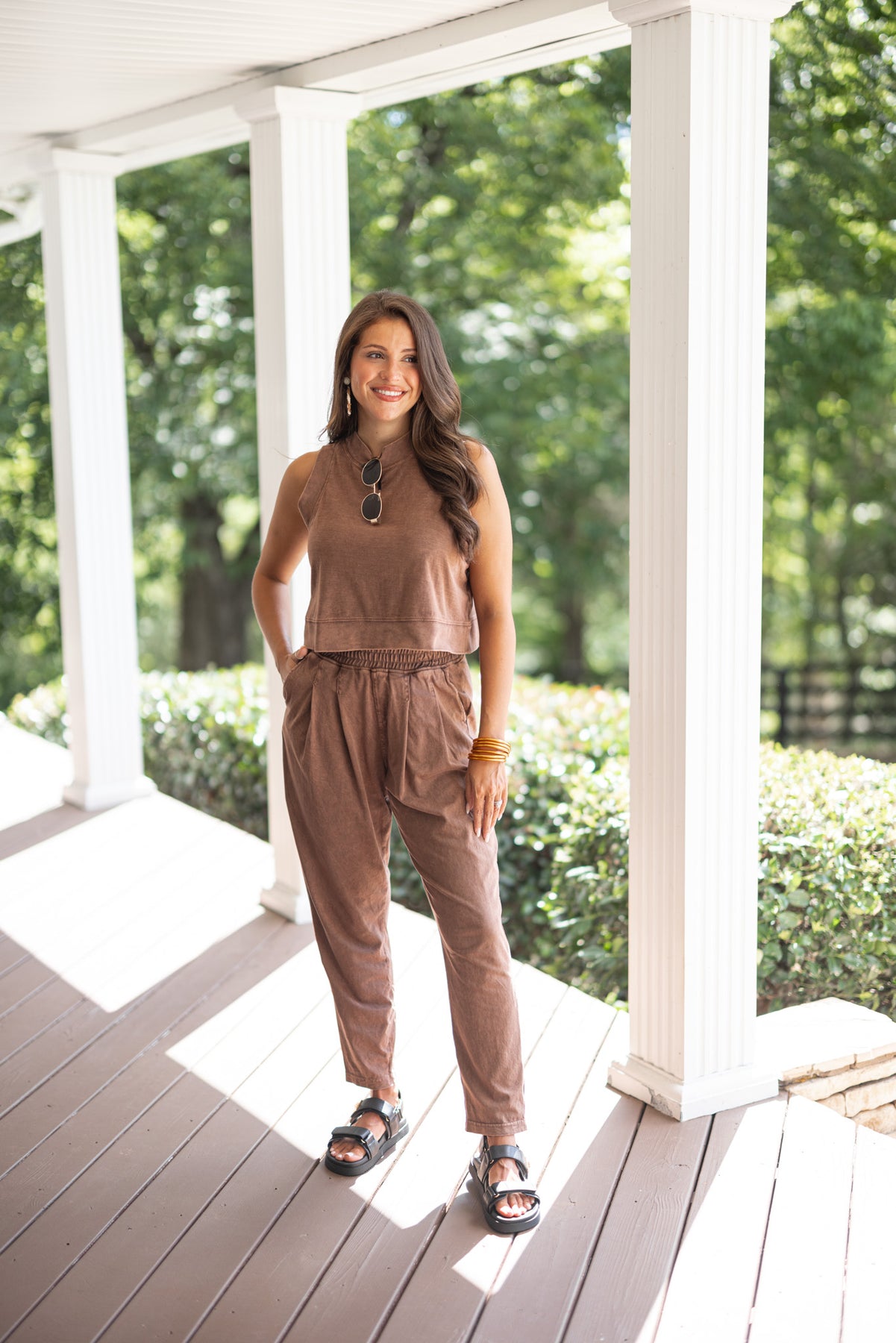 Elevate your casual style with our mineral washed knit pants featuring an elastic waistband for ultimate comfort. The chic pleat pintuck design adds a touch of sophistication, while front pockets and a back pocket provide practicality for your essentials. Paired with the matching top, this jogger-style ensemble offers a relaxed yet fashionable look, perfect for picnics, spa days, casual outings, or a day at the beach. Enjoy a blend of comfort and style in this versatile and effortlessly chic outfit!