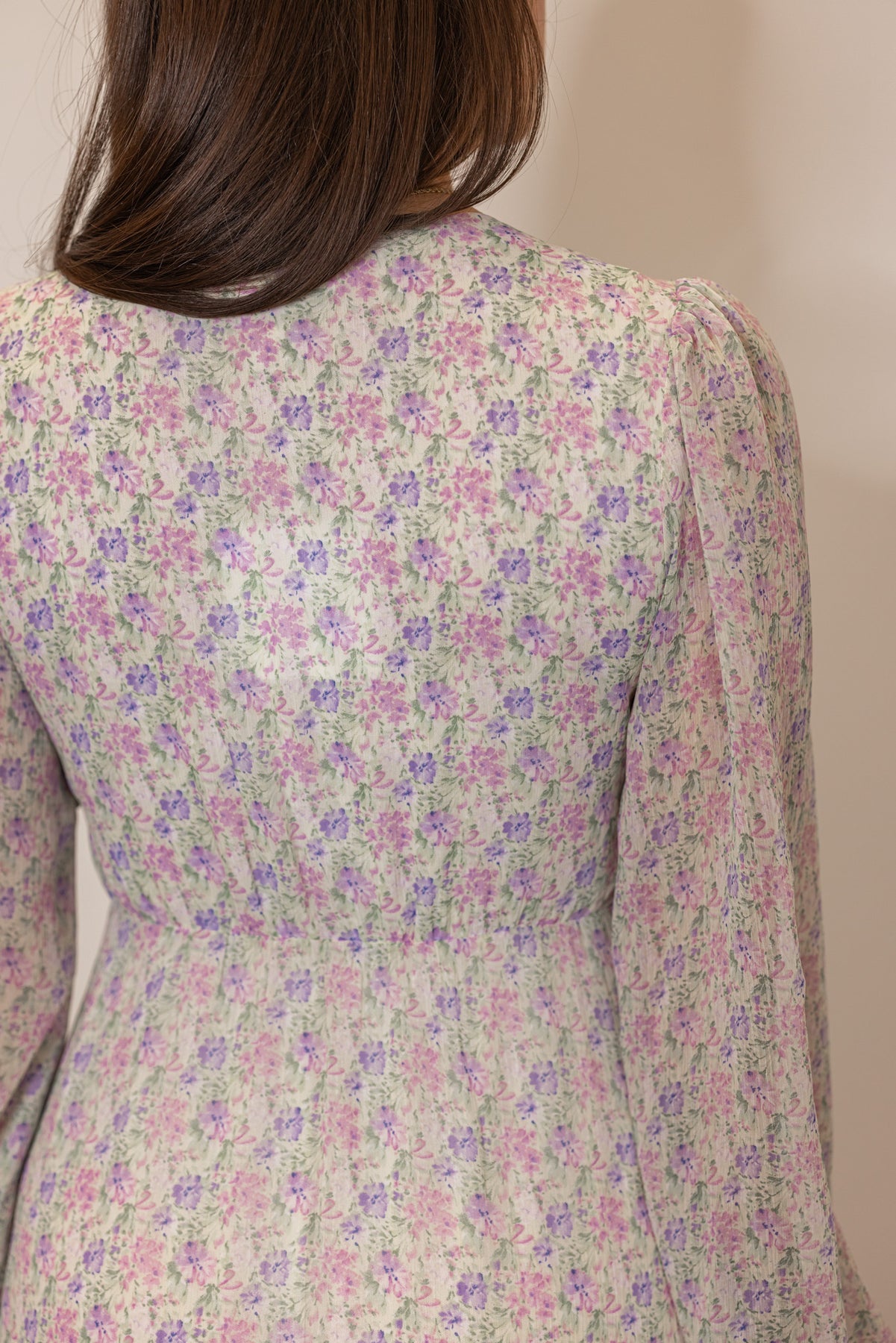 Add this Darling to your Floral Collection for a lovely touch of elegance! Cream chiffon floral print fabric, featuring a v neckline, long balloon sleeves, and a dramatic front side slit in the bottom hem. The perfect dress for all your upcoming special occasions - show up in style!