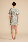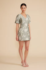 Lucy Paris Sage jacquard mini dress with cream and pale lavender floral print