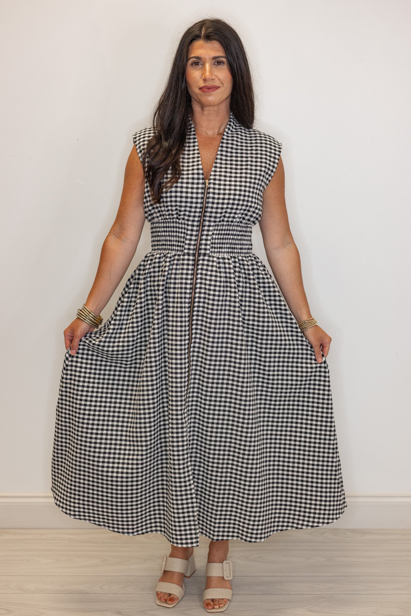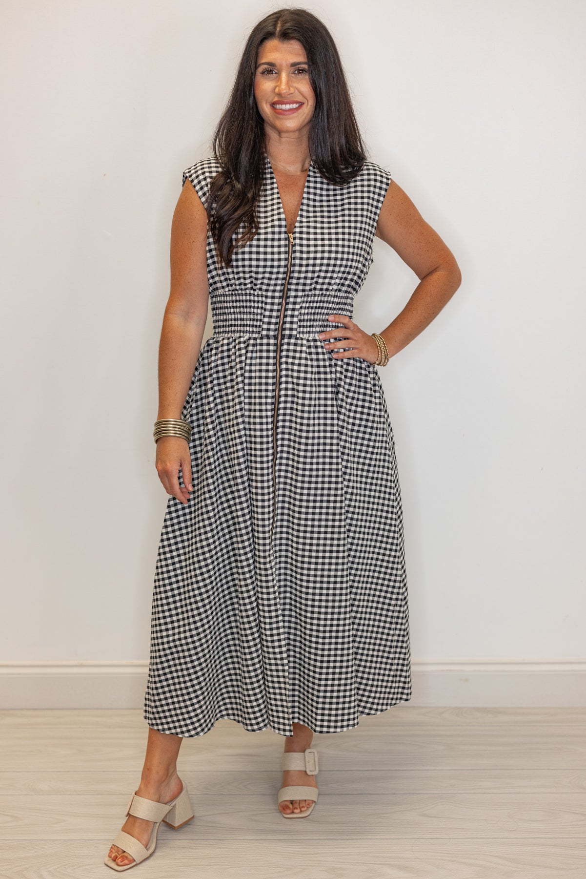 Gingham print is our FAVE! Check out this adorable sleeveless midi dress, featuring a v neckline, smocked waistline, and a zipper front closure with a front slit in the bottom hem. Lightweight and perfect for any occasion, this Lovely babe adds effortless style to your wardrobe!