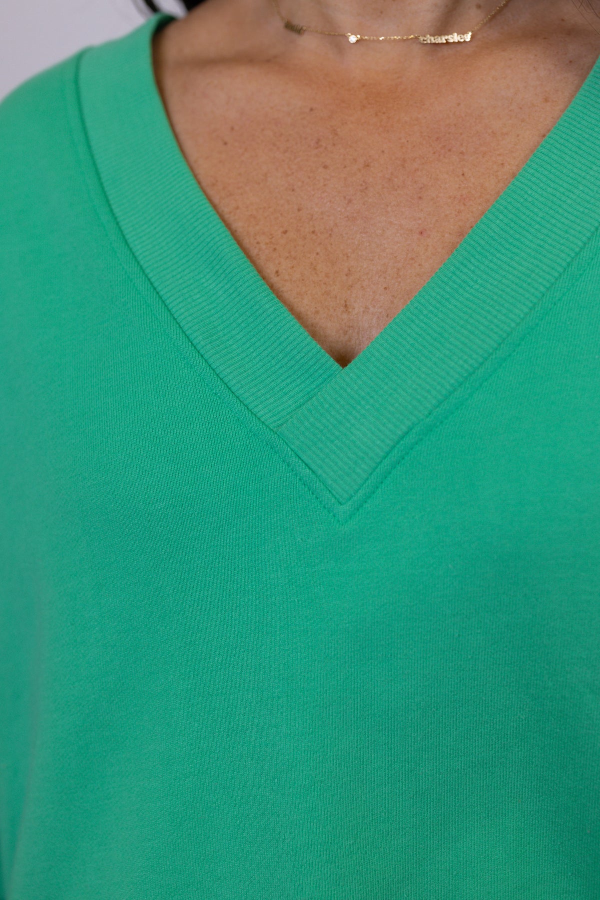 This comfy sweatshirt is definitely trending! Boxy, relaxed fit pullover in french terry knit fabric, featuring a v neckline in front and back, and long balloon sleeves. Total trending perfection and so easy to style!