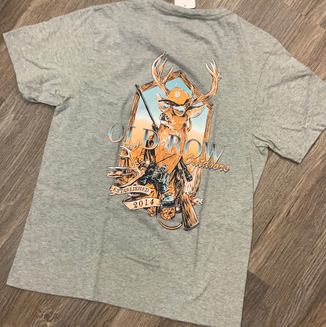 For all the deer hunters! Old Row outdoors, The Hunting Buck pocket t shirt in grey.