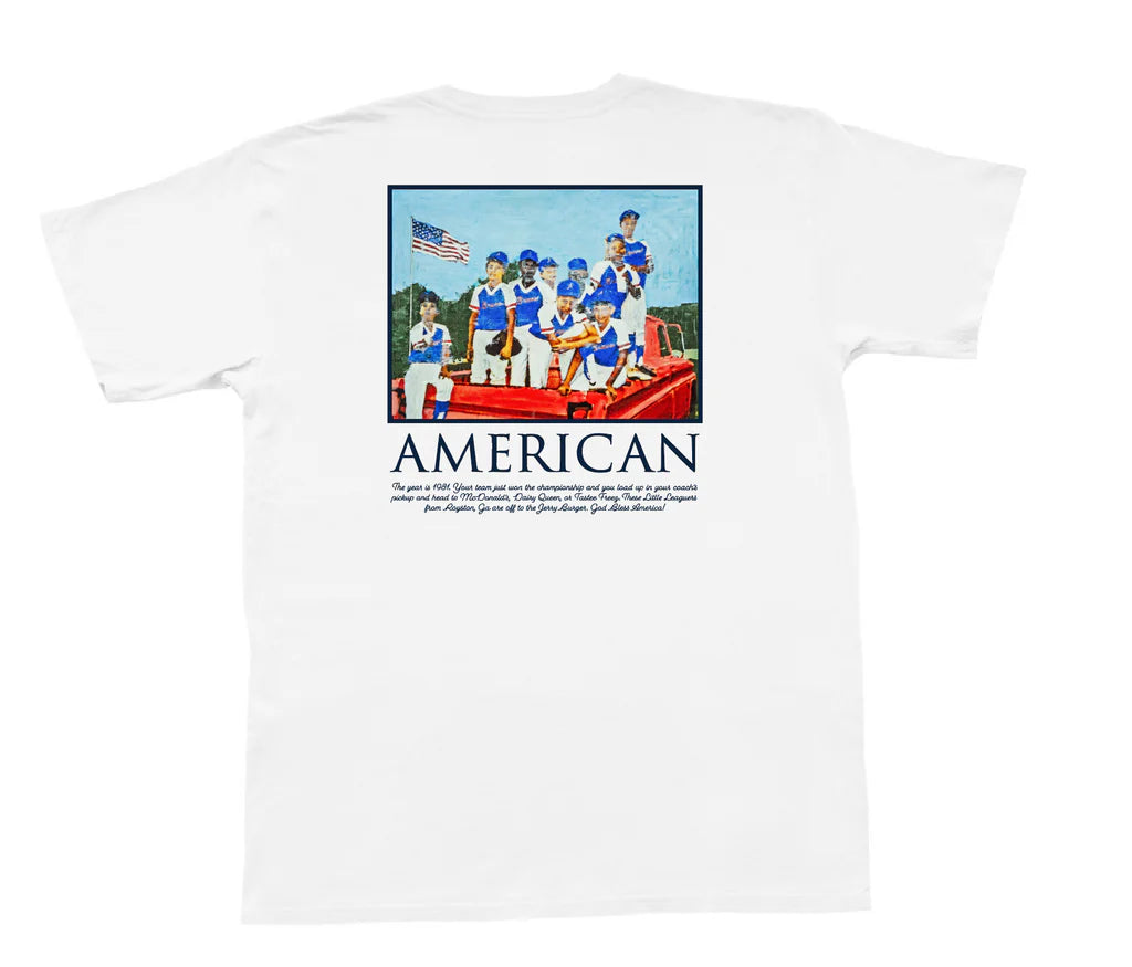 The God Bless Little League Tee is a classic design perfect for celebrating the nostalgia of early baseball. It features artwork by Georgia artists Plaid Columns. The perfect choice for those looking to bring back a little bit of the past. Artwork inspiration is from a photo of a Little League team in Franklin County, Georgia.