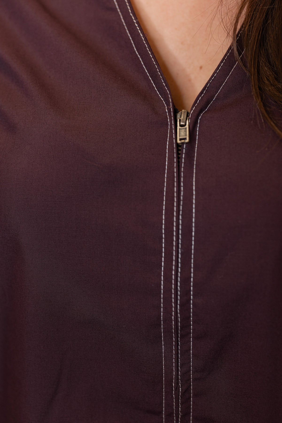 Step out in style with the Zealous Zips Brown Mini Dress, featuring playful cream contrasting stitching that adds a fun twist. Its 3/4-length baloon sleeves bring a flirty flair, while the full length zipper front closure and rounded bottom layered trim lets you complete your look. The collared V-neckline adds a touch of chic sophistication to this effortlessly bold mini dress. Perfect for turning heads wherever you go!